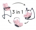 Autosedačka Maxi-Cosi 3 v 1 pro panenky. Při zavěšení sedačky na konstrukci je rázem houpačka pro panenku do velikosti 42 cm. Otočením konstrukce získáte vysokou jídelní židličku s pultíkem.