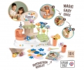 Kreativní sada obsahuje stroj na výrobu květin. Dále mnoho doplňků, např. stonky, květiny, razítka, vázy, papírové tašky, samolepky.