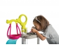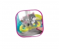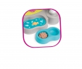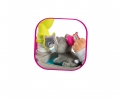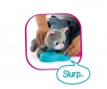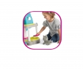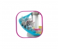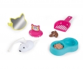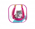 Kočičí dům ve tvaru škrabadla se skládá z různých herních prostor. Horní část škrabadla slouží pro odpočinek a má odnímatelný domeček, zrcadlo, kartáč a houpačku/kolébku na spaní. Po rampě se kočička dostane do spodního patra, kde je kočičí toaleta s hovínkem a lopatičkou na úklid, miska na vodu společně s krmením pro kočičku, vyobrazené akvárium s rybkou a zavěšená plyšová myška na hraní. Součástí je měkká plyšová kočička se zvukovými efekty - když jí jemně zmáčkneš bříško, začne příst a mňoukat a když ji dáš najíst z její mističky uslyšíš jak si pochutnává. Rozměry: 48 x 57 x 44 cm. Hmotnost: 1,805.