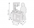 Kuchyňka Bon Appetit v moderním designu se spoustou kuchyňského příslušenství, 23 příslušenství. Kompaktní a realistická dětská kuchyňka, která je celá navržena v moderním designu současných kuchyní. Díky krásnému zbarvení v jemných pastelových tónech se hodí do dětského pokoje i do společného obývacího pokoje. Kuchyňka má sporák se dvěma plotýnkami, troubu a digestoř. Elektronický zvukový modul v jedné z plotýnek poskytuje realistické zvuky vaření. Výbavu doplňují lednice, dřez s kohoutkem a espresso kávovar s různými kapslemi na čaj a kávu. Rozsáhlé příslušenství lze snadno uložit do jedné z mnoha polic. Součástí vybavení je rendlík s poklicí, talíř, příbory, nádobí, makety obalů od jídla, hrnek, hrnek a pánev.
