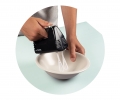 Věrná replika ručního šlehače mini Tefal je ideální do každé kuchyňky při přípravě oběda nebo při pečení. Metličky se točí mechanicky stlačením tlačítka.
