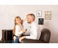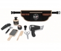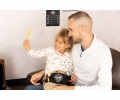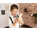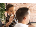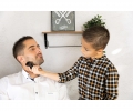Nastavitelný holičský pás s 10 doplňky. Textilní pásek s nastavitelnou velikostí lze perfektně nastavit a snadno se nasazuje pomocí klipu vhodného pro děti. Gumičky drží deset doplňků: nůžky, mechanický zastřihovač vousů, pleťová voda, holicí strojek, zrcátko, elektronický fén se zvukem, mýdlo na ruce, hřeben a štětka na holení.