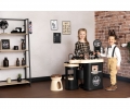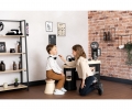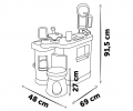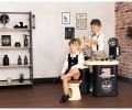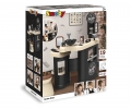 Smoby Barber Shop ve stylovém designu skutečných barber shopů. Se 3 hracími plochami: umyvadlem s ruční sprchou, oblastí pro péči o vlasy a vousy s taburetem a pokladnou se čtečkou kreditních karet.