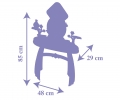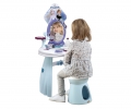 Robustní toaletní stolek s velkým zrcadlem je navržen v oblíbených barvách Disney Frozen Elsa a její sestry Anny. Malé princezny se mohou posadit se svými přáteli do pohodlného sedu a upravovat si účes, stylizovat a hýčkat se. Lahvičky parfémů, kartáč na vlasy, šňůra perel, sponky do vlasů a mnoho dalších doplňků jsou součástí. Četné police jsou praktické a lze do nich uložit veškeré náčiní.