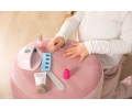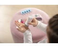 Sada obsahuje UV lampu se světelnou a zvukovou funkcí, 2 makety laků na nehty, oddělovače prstů, atrapa tuby krému na ruce a pilník (hladký).