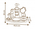 Po upečení lze sušenky libovolně zdobit: pro tento účel je k dispozici zdobící stříkačka s různými nástavci. Na balení jsou malé průhledné sáčky a stuhy. Včetně lisu na sušenky se 4 nástavci, razítka na sušenky se 3 formičkami, 2 vykrajovátek, 3 odměrek, velké lžíce, otočného tácu, 4 přihrádek na sypání, malého nože, špachtle a také sáčků a stuh na balení. Všechny pečicí sady Smoby Chef jsou vyrobeny ve Francii z vysoce kvalitních materiálů, jsou bezpečné a nezávadné pro potraviny a vhodné do myčky nádobí. Bez pečicích přísad.