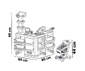 Maxi market s pokladnou, nová mechanická váha (zobrazená hmotnost se upravuje podle vážených potravin), hodiny a panel otevřeno/zavřeno. Bohaté příslušenství, např.makety krabiček (cereálie, těstoviny, sušenky, mléko), 2 plechovky, 2 jogurty, 6 ovoce a zeleniny, 2 makronky, 2 koláče, 1 chléb, 1 elektronický snímač čárových kódů se zvukem a světlem, 4 účtenky, 1 kreditní karta, 9 mincí a 12 bankovek.
