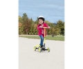 Koloběžka s dřevěným, protiskluzovým stupátkem, kovový rám s výškově nastavitelnými řídítky na dvě polohy - max. 72 cm. 4 kolečka pro lepší stabilitu. Kolečka s protihlukovou úpravou. Koloběžku lze snadno složit. Intuitivní systém řízení umožňuje skvělou ovladatelnost. Díky nožní brzdě na zadním kole lze každou rychlou jízdu bezpečně zastavit. Max. nosnost 50 kg. Rozměry: 65 x 33 x 79 cm.
