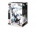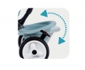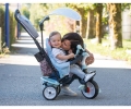 Multifunkční šlapací tříkolka s kovoým rámem, se stříškou proti sluníčku s UV ochranou v modrém provedení vhodná pro chlapečky i holčičky. Intuitivní řízení pomocí nastavitelné a odnímatelné rodičovské vodící tyče. Nastavitelné sedadlo ve 3 směrech s opěrkou hlavy, s omyvatelným textilním potahem, odnímatelný bezpečnostní ochranný rám a pásy, volant s klaksonem a zpětnými zrcátky, sklopné odnímatelné stupačky na nožičky. Tichá, bezúdržbová a protiskluzová komfortní kolečka Whisper. Možnost zablokování šlapadel, parkovací brzda, výklopný plastový košík. Praktická taška a držák na láhev na vodící tyči. Certifikováno EN 1888-1 pro kočárky. Rozměry: 68 x 101 x 52 cm. Hmotnost 6,3 kg.