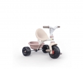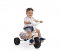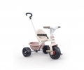 Šlapací tříkolka v růžovém provedení má kovový rám, odnímatelnou a nastavitelnou vodící tyč, protiskluzové pedály s možností zablokování šlapání, nastavitelné ergonomické sedadlo na 2 pozice, bezpečnostní pás, výklopný plastový košík.