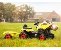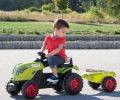 Šlapací traktor CLAAS s volantem a přívěsným vozíkem, který lze odpojit. Odklápěcí kryt motoru. Nastavitelné sedadlo dle výšky dítěte. Klakson na volantu. Vyrobeno z velmi kvalitního plastu. Rozměry vč. vozíku: 142 x 54,5 x 44 cm. Délka traktoru bez vozíku cca 80 cm. Hmotnost 6,3 kg. Věk: 3+