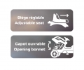 Nastavitelné sedadlo dle výšky dítěte. Klakson na volantu.