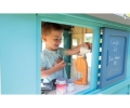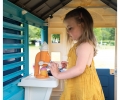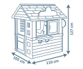 Venkovní zahradní domeček cukrárna s prodejním pultem a příslušenstvím. Doplňky do domečku obsahují talíř, sadu příborů s vidličkou, nožem a lžící, hrnek na kávu s sebou, pánev na lívanečky s funkcí otáčení, 2 palačinky, cukřenku, misku na sypání, led výrobník smetany, 2 kopečky zmrzliny a vafle, 4 účtenky, přihrádku na drobné, čtečku kreditních karet a kreditní kartu. Díky speciálnímu výrobnímu procesu se zahradní domek velmi snadno montuje a je obzvláště stabilní. Čtyři robustní boční stěny jsou navrženy velmi detailně a fasádu zdobí motýli a kočička. 2 okna s lamelami a posuvná okenice, na kterou lze psát křídou a také malé vstupní dveře doplňují vlastnosti tohoto všestranného vybavení pro děti. UV-stabilního plastu a zvláště odolné proti povětrnostním vlivům a vyblednutí.