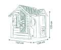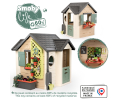 Domeček pro malého zahradníka se spoustou herních prvků a příslušenství, např. velký truhlík, mřížka na stěnu s květináči, krmítko, okap s konvičkou a další. Lze rozšířit o další komponenty (kuchyňka, zvonek, plné dveře, piknikový stůl s lavicemi a další).