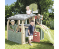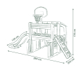 Multifunkční zábavné centrum pro více sportovních aktivit, které má dvě části. První část obsahuje samotný domeček se střechou a bránou a druhá část je složena ze skluzavky 1,5m, 1 basketbalového koše s míčem, 1 fotbalové sítě a oboustranné stěny na lezení/šplhání.