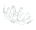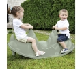 Dvojitá houpačka s ergonomickými sedátky ve tvaru pejska v zelenošedé barvě. Dvě držátka pro bezpečné použití.