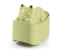 Houpačka s ergonomickým sedátkem ve tvaru kočky v zelené barvě. Uši slouží jako držátka.