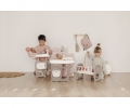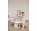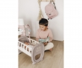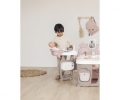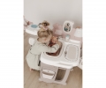 Hrací centrum pro panenky Baby Nurse se 3 hracími zónami je vybaveno transportními kolečky, rukojetí a je skládací pro snadnou přepravu. Po otevření překvapí třemi prostornými hracími koutky: kuchyňkou, koupelnou a ložnicí. Mycí prostor je vybaven odnímatelnou vaničkou, hned vedle je přebalovací pult, který zároveň slouží jako šatna. Pod komodou je věšák na ručníky, háček na kabát a vyjímatelný odpadkový koš. Rám obrazu na zadní stěně lze přizpůsobit vlastními fotografiemi. Jídelní kout se sedátkem pro panenky má dřez s baterií (nefunkční), varnou desku, mikrovlnnou troubu a odkládací police. Spací část obsahuje postýlku pro panenky, otočný kolotoč a fosforeskující lampu. Příslušenství: lahvičky, talíře se lžičkami, hrnce, klinické teploměry a různé nádoby a prázdné obaly na hraní. Vhodné pro panenky do 42 cm (panenka není součástí balení).