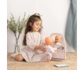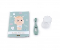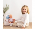 Koupelna pro panenky z řady Baby Nurse. Obsahuje toaletu, roli toaletního papíru, umyvadlo, zrcadlo, kartáček na zuby a kelímek.