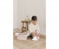 Vanička s opěrkou hlavy pro panenky Smoby Baby Nurse s elektronickou sprchou a bublinkovou funkcí se světlem. Z automatické sprchové hlavice vyteče skutečná voda pouhým stisknutím tlačítka. Vana má elektronický modul se 2 funkcemi: uzavřený okruh vodní trysky a bublifuk se světlem. Polička nabízí dostatek místa pro uložení vloženého příslušenství: osušky z bavlněného froté, lahvičky na šampón s pumpovací funkcí a teploměru ve tvaru velryby. Teploměr je citlivý na teplo, při kontaktu s vodou mění barvu. Vhodné pro panenky do 42 cm. Panenka není součástí balení.