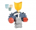 Posunutím šoupátka doprava, doleva nebo doprostřed a otočením kohoutku vystříkne voda z hroší tlamy a roztočí kolečka.